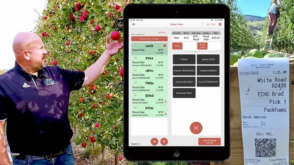 The clever simplicity of the Hectre Orchard Management App on show. Jason Woodworth, CEO of Lamont Fruit Farms uses Hectre and says the bilingual capability and ease of use has been a huge plus for their company. Harvest data, labor tracking and quality control are all captured in real time, flowing through to yield and labor reporting, and auto generating payroll data. Hectre customers can print waterproof bin tickets right in the field, straight off a mobile printer.